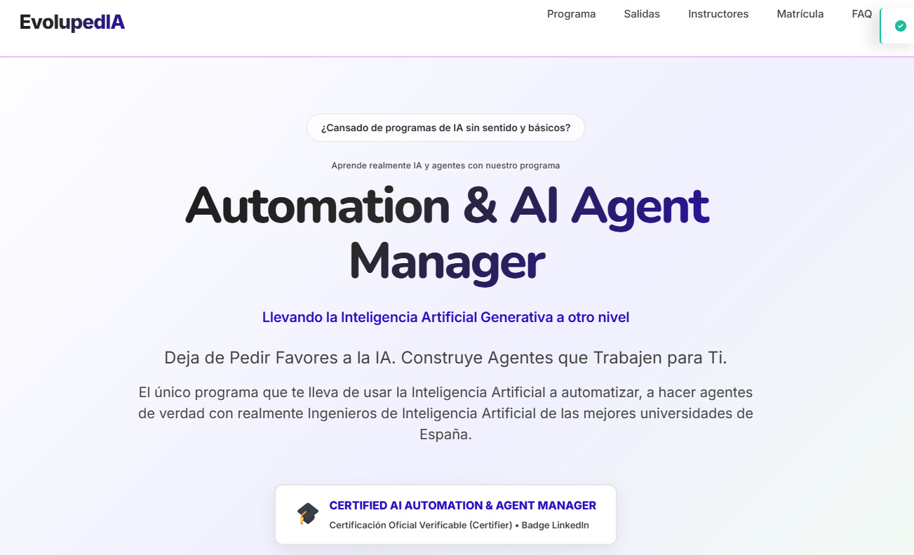 Os recordamos que el 21 de febrero arrancamos nuestro Certificado de Automation & AI Agent Manager. Serán 4 meses exclusivos de puro valor donde aprenderéis: